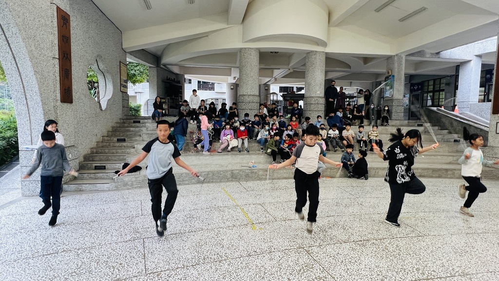 隨著新學年度的展開,學務處幫孩子規畫了新目標-跳繩!透過體育課峻銘老師的用心指導,下課時,老師們也鼓勵學生拿起跳繩走出教室,大家一起跳了起來,校園裡不時可以看到孩子跳繩的身影,也看到因跳繩而帶來的自信與笑容!