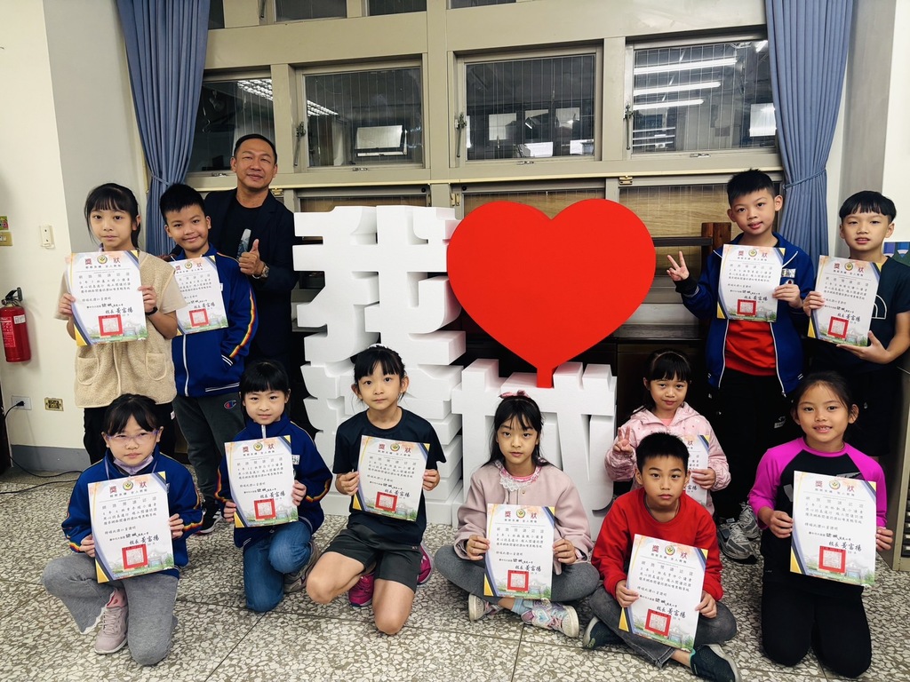 此外,「臺中市線上閱讀認證」也傳出佳績。積分達300分(綠繡眼等級)以上者獲頒獎狀肯定;而積分突破1500分(紅嘴黑鵯等級)的頂尖閱讀高手,更能獲得與校長合影留念的特別殊榮。校方期盼透過多元的獎勵機制,讓孩子體會「閱讀好處多」,讓知識成為孩子一生帶得走的能力。