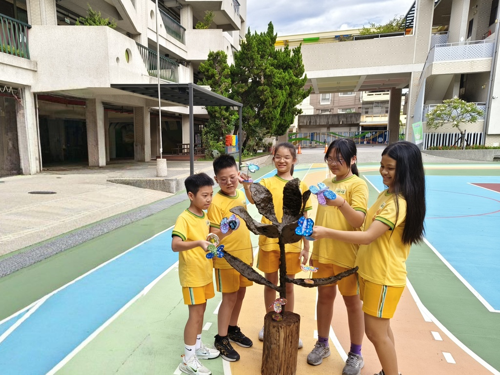 校友銅雕藝術家陳士雄先生再度返校協同教學,以童心未泯的創作理念引導學子,讓藝術成為生活的永恆。師生在共創過程中,將希望的種子撒入心田,期待有朝一日能如彩蝶般自在飛舞。