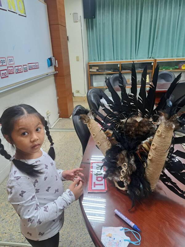 在本週的新住民語課堂上,教室意外變成了一座迷你文化展覽館!菲律賓語老師特別帶來一頂充滿民族特色的傳統頭盔,讓學生們近距離體驗異國文化的魅力,課堂氣氛瞬間熱鬧得像在辦文化節。