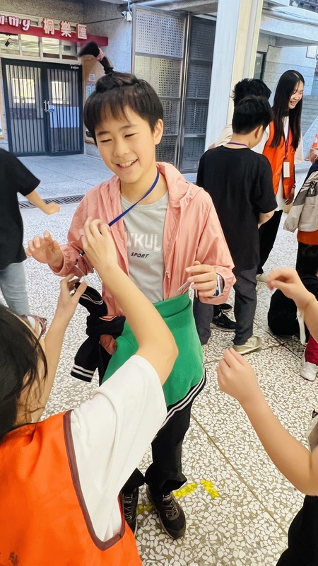 星期六,微涼的週休假日,桐林的孩子依舊起了個大早,精氣神十足的走進校園,準備參加成長young young營活動。今日的營隊活動是由嶺東科大光明志工服務社所帶領,大孩子們精心設計許多品格遊戲,一早便開始等候小朋友的到來。