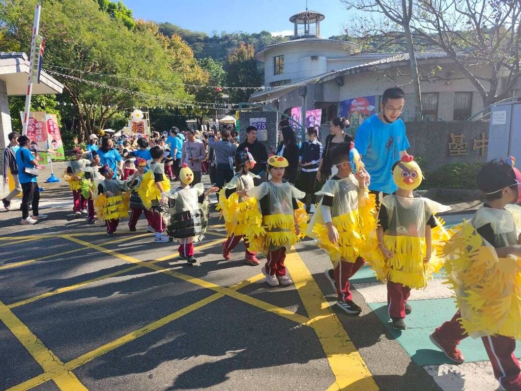 緊接而來的扮裝遊行更是全場焦點!孩子們化身為蜜蜂、貓頭鷹、小雞等可愛動物,戴上由美勞老師指導、孩子們親手設計的獨一無二面具與披風,為校園增添無數繽紛色彩。此次遊行孩子們、家長與社區的夥伴們在社區中一起留在美好的回憶與足跡。