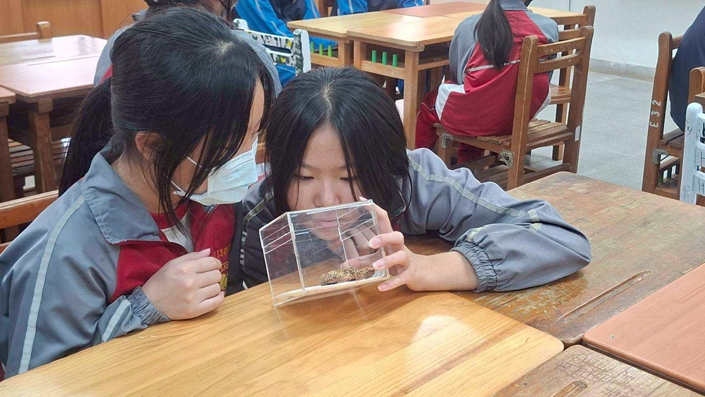 課程一開始,講師以生動的方式介紹校園中常見的生態系,從植物、昆蟲、鳥類到微小生物,逐步帶領學生認識各種生命在校園中的角色。最引人入勝的部分是「食物鏈」示範,講師透過圖片與互動問答,引導學生思考生物之間如何相互依存、能量如何在生態系中流動。學生紛紛舉手發表見解,展現濃厚興趣。