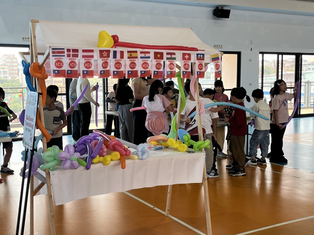 同時間,由華欣主任帶領的造型氣球教室也正在歡笑中展開。大學伴與小學伴分組合作,一起打氣、折氣球,製作專屬的作品。每當氣球「砰!」的一聲,小學生驚叫、大學生大笑,教室裡滿滿都是快樂的能量。