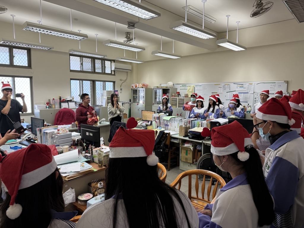 今天在辦公室吃飯的時候,突然聽到聖誕歌輕快地飄過來,接著又聽到台語《北風呼呼吹》,歌聲裡還混著笑聲。順著聲音一看,原來是 207 在校園裡開心報佳音!有人穿著女僕裝、有人扮成聖誕老公公,一路唱歌、一路發糖果 ,把歡樂和幸福平安帶給沙鹿國中的老師同學們~ 今天的校園,被207弄得又甜又熱鬧,滿滿都是聖誕的可愛氣氛 ❤️