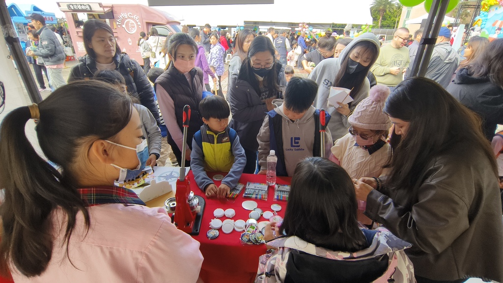 活動期間,東海國小也設置闖關體驗攤位,包含 Cool English AI 口說英語挑戰、互動式英語問答「Where are you going?」以及胸章壓印手作活動,吸引許多家長與孩子熱情參與。透過遊戲化與科技輔助的設計,讓雙語學習變得有趣又親近,也讓民眾實際感受到東海國小推動雙語教育的用心與成果。