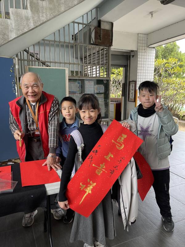 ~大智名家揮毫贈春聯~ 為營造年節喜氣,傳遞馬年帶來嶄新希望及正向力量,雅娟校長、強哥會長特別邀請本校退休教師書法名家許銀塗老師,傑出校友陳姝如老師,帶領家長會成員共同揮毫,送上新春祝福! 感謝許銀塗老師,大師功力非凡,字體蒼勁有力,許多學生、老師排隊索取! 感謝姝如老師、韻如老師帶來可愛的馬型拓印,讓大家愛不釋手! 感謝雅娟校長、強哥會長、雪盈隊長及委員們,帶給大家滿滿的祝福! 外師Alex也獻上她的第一次拿毛筆、寫春聯,小朋友都說Alex的字很漂亮呢!