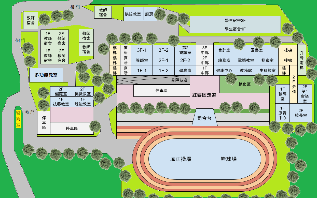 本校設有學生宿舍,自由申請入住,讓學生有更充足的學習與睡眠時間。就讀費用多有補助,一般生(無住宿)含午餐費、教科書費等每學期約新台幣2500元;一般生(有住宿),含早、午、晚餐費、住宿費、教科書費等每學期約新台幣9000元。經濟弱勢學生另有費用減免,以及各種獎助學金補助。